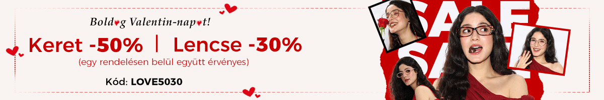 Használd a “LOVE5030” kuponkódot a fizetéskor, és élvezd a 50% kedvezményt a keretekre és 30% kedvezményt a lencsékre!