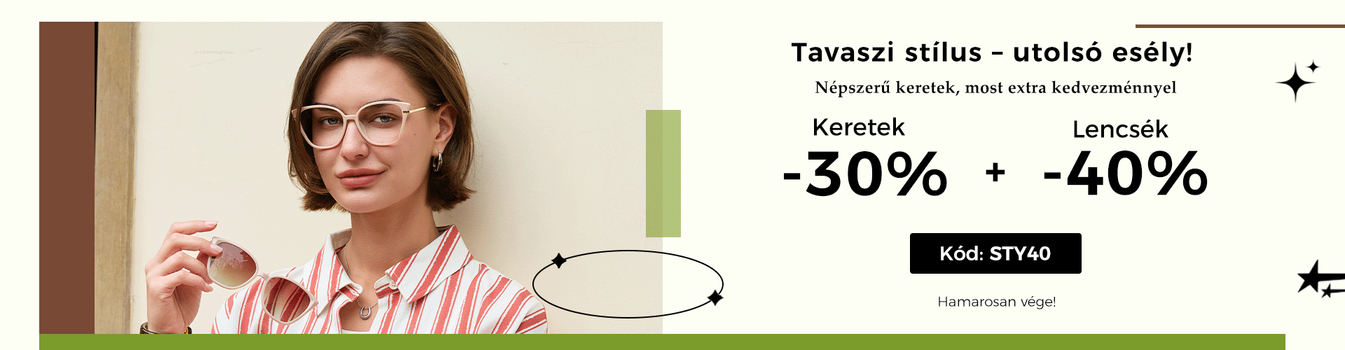 Használd a “STY40” kuponkódot a fizetéskor, és élvezd a 30% kedvezményt a keretekre és 40% kedvezményt a lencsékre!